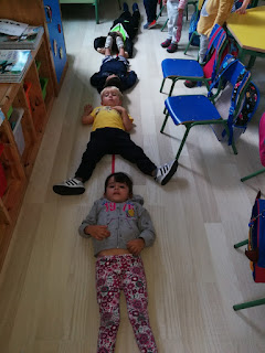 ENTONCES, DECIDIMOS PONERNOS EN EL SUELO PARA VER CUÁNTO ERA DE LARGO UN DELFÍN, ASÍ LO PODRÍAMOS VER MUCHO MÁS VISUAL.
